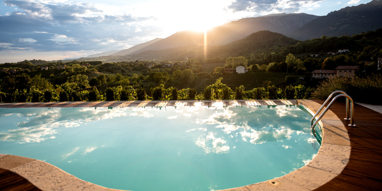 Nel periodo estivo la sua piscina a sfioro renderanno il tuo soggiorno magico….immaginati in acqua con un calice di ottimo Prosecco a guardare il paesaggio unico.